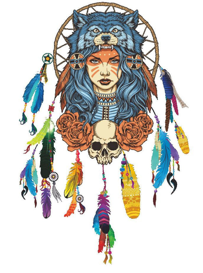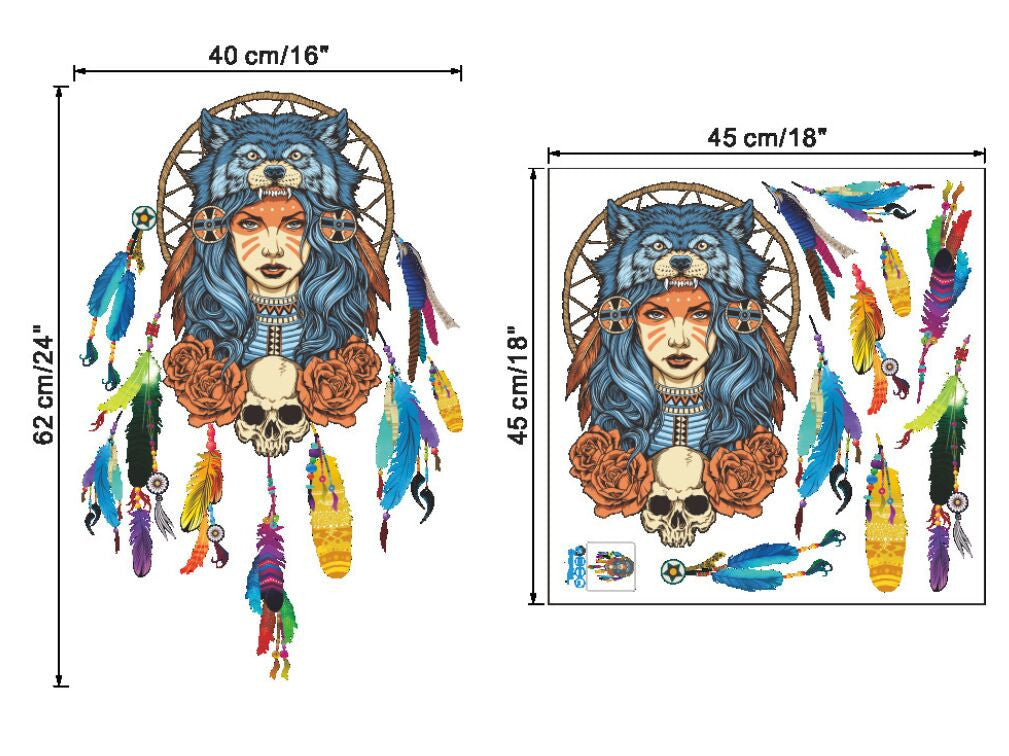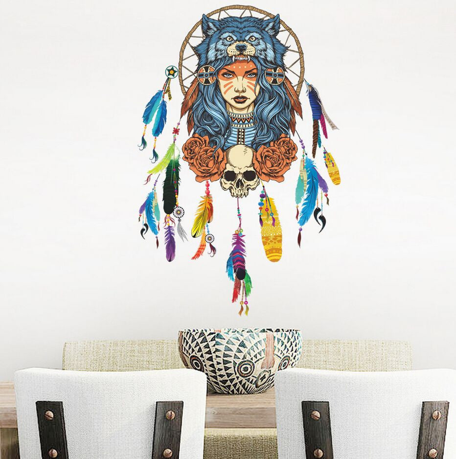 Indian Wolf Headdress Full Color Girl Wall Stickers Wall