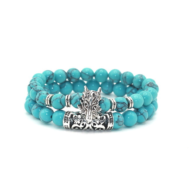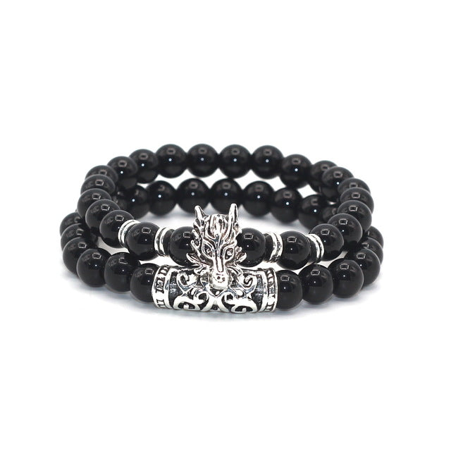2 pcs/set Antique Silver Plated Wolf Head Charm Bracelet.