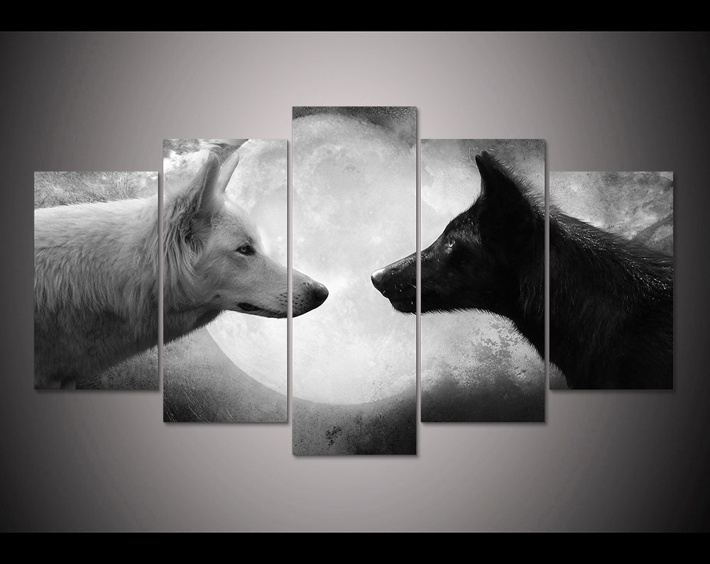 HD Print 5 pcs Black & White Wolf Canvas Wall Art